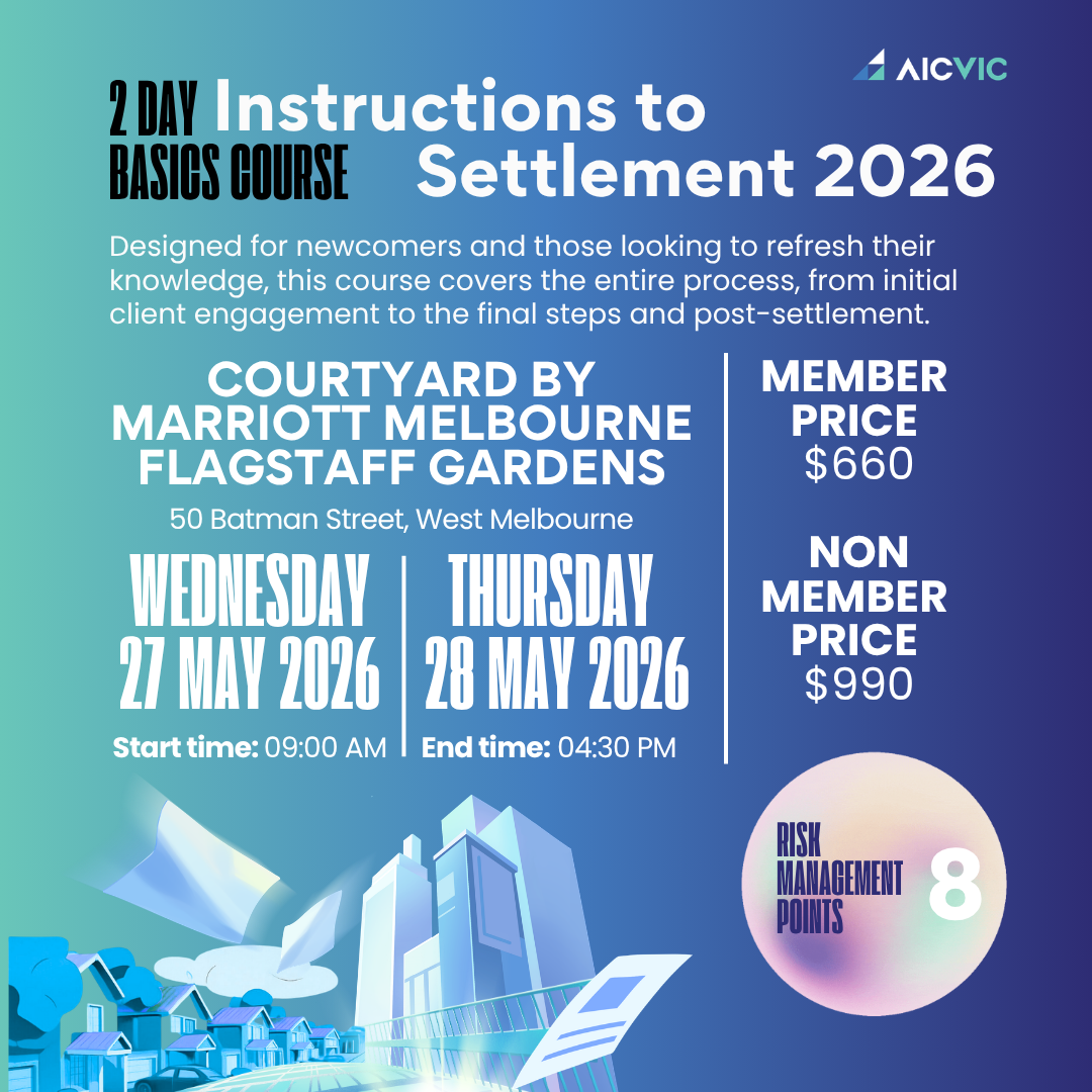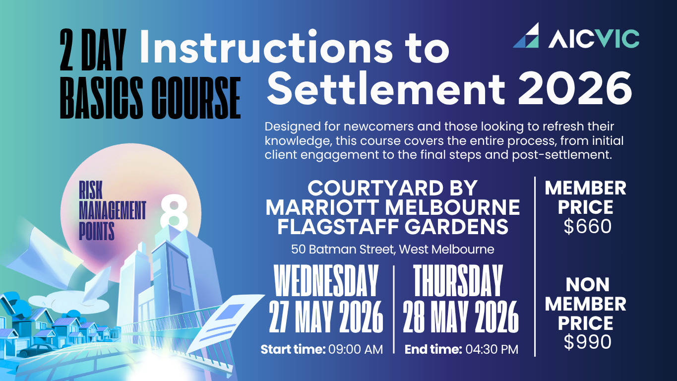Required by AIC VIC for all licensed members. Conveyancers must complete 10 CPD points per year (5 face-to-face, 5 online).